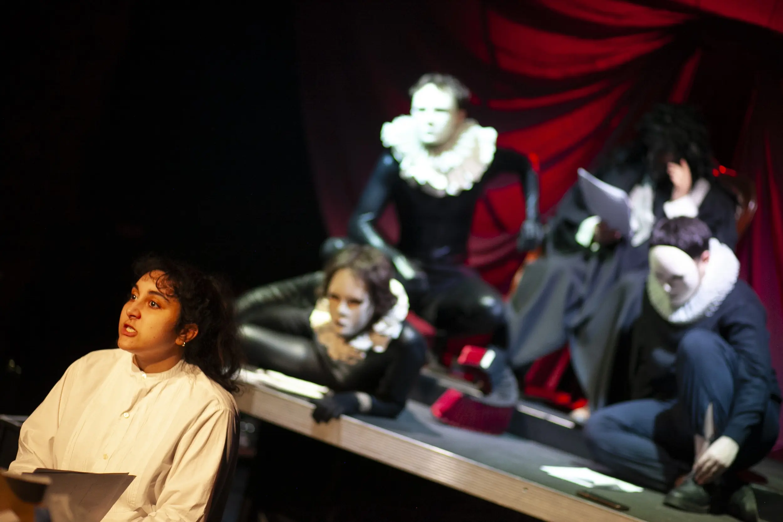 Selvi KayaRose MetralÉtienne RabaudImane RezkallahWaïl SouilouThéo TrassoudaineL’École propose aux apprenti·es comédien·nes de la promotion 33 de s’essayer à un exercice de mise en scène. Ils et elles ont entre 15 et 20 minutes chacun·e pour mettre en scène leurs camarades de promotion. Au plateau, les propositions s’enchainent et dessinent un cadavre exquis dont les règles du jeu sont les suivantes : six apprenti·es comédien·nes au plateau et un espace commun.